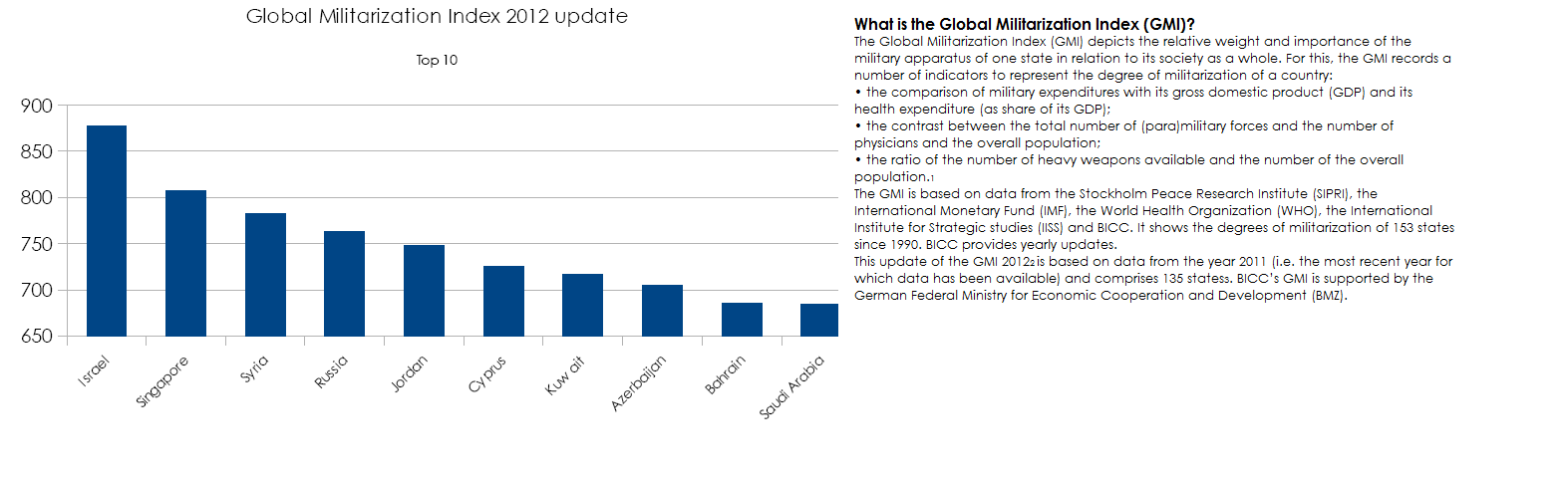 Saudi-Arabia were amongst the top ten of the GMI4. Six of these ten states are situated in the