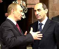 In its turn, Armenia began to think about transferring the relations with Moscow to "market base." Armenian observers think that the only trump of Robert Kocharyan in "the wrangle" with Moscow is the Russian military base in Gyumri. At present, Russia pays nothing for the base, wherein C-300 missiles and fighters MiG-29 are placed within the framework of CIS United Anti-aircraft System. Armenia pays even for communal expenses of the base. The Armenian president may demand payment for the leasing and correct the tariff every year depending of the amicability level, the newspaper writes.