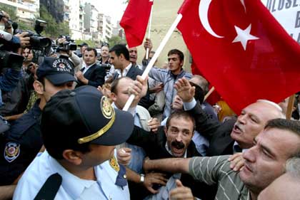 He was also among the crowd at an Istanbul courthouse late last month. The crowd, comprising veterans, families of soldiers killed in fighting the outlawed Kurdistan Workers' Party (PKK) and members of the Turkish Lawyers' Union, attempted to lynch author Perihan Mağden, who was on trial for allegedly turning people against military service after she defended the rights of a conscientious objector in a weekly magazine column.