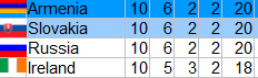 Non of these games are going to be easy since alll of these teams are in contention still. If we do win both coming games we might have a shot at first place especialy if russia mails it in early and brings out its b squad in some of the remaining games but even then they have a head to head advantage over us so its kinda unlikely but not impossible i guess.Hayastan or Bust.